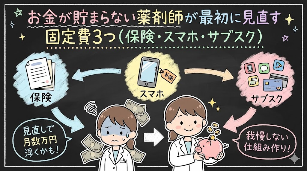 お金が貯まらない薬剤師が最初に見直す固定費3つ(保険・スマホ・サブスク)
