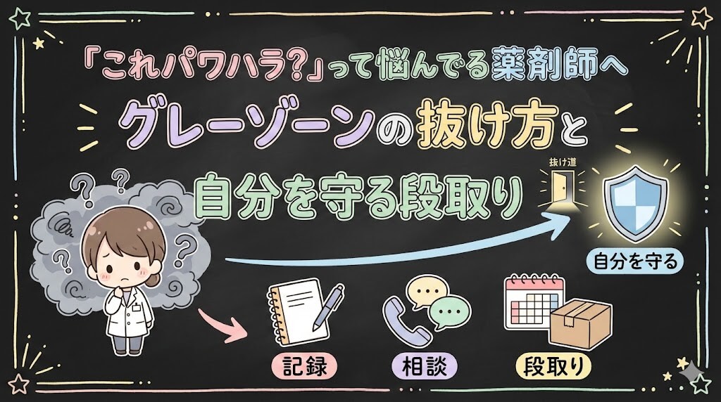 この記事では、パワハラのグレーゾーンで苦しんでいる薬剤師の方に向けて、「自分の感覚を信じていい根拠」「守り方の手順」「退職までの段取り」「次の職場で同じ目に遭わないための質問テンプレ」までを整理しました。法律の専門家ではない私の立場から書ける範囲で、でも現場のリアルには寄り添いたいと思っています。
