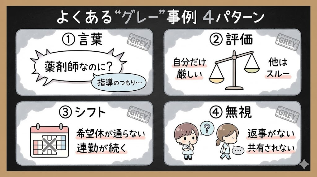 よくある”グレー”事例——言葉・評価・シフト・無視の4パターン