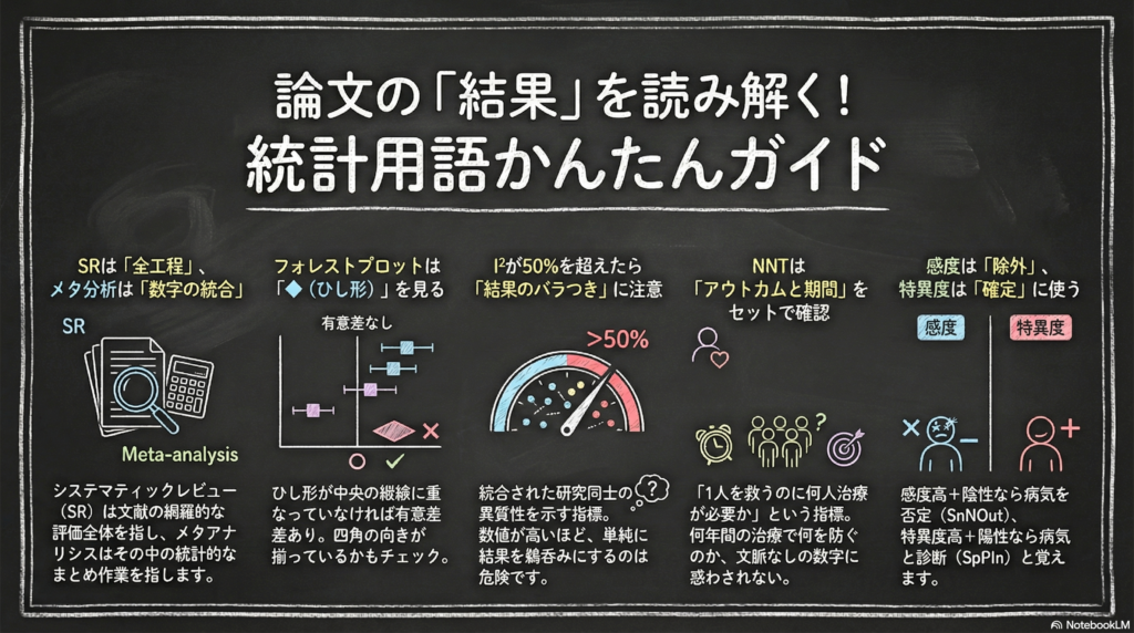 この記事では、エビデンス統合と治療効果に関する重要な用語を、薬剤師が実務で使える形で整理します。数式は不要です。概念を正しく理解することが目的です。