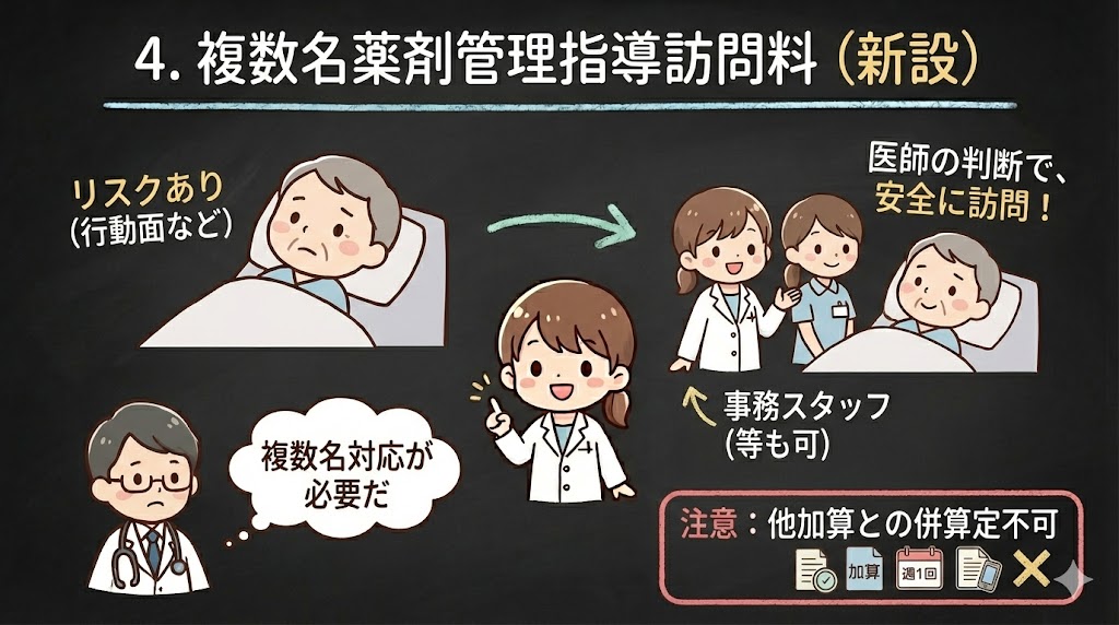 4. 複数名薬剤管理指導訪問料(新設):リスクの高い訪問に対応