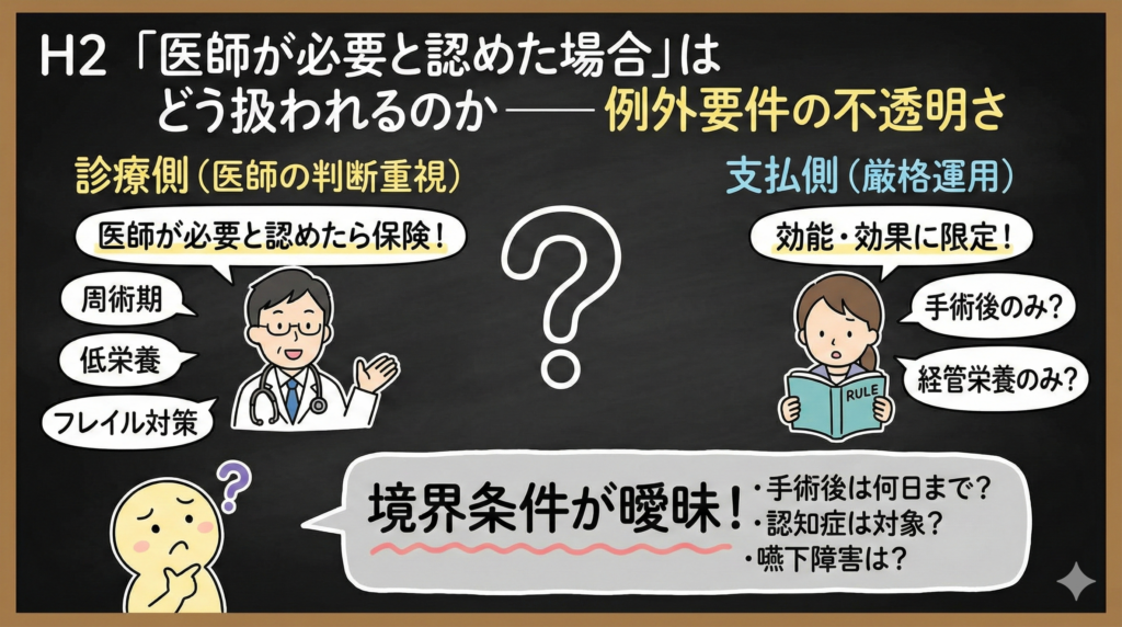 「医師が必要と認めた場合」はどう扱われるのか――例外要件の不透明さ