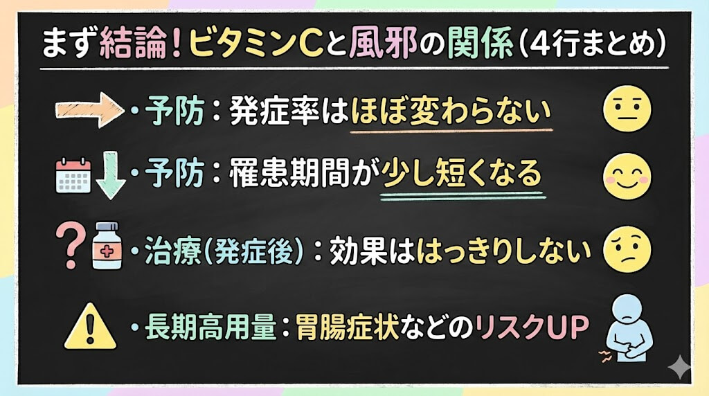 まず結論を4行で:ビタミンCメガドーズと風邪の関係
