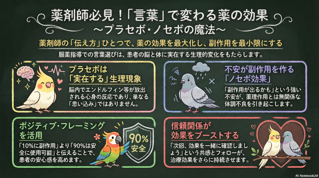 この記事では、プラセボ効果とノセボ効果を正しく理解し、服薬指導に活かすための実践的な視点をお伝えします。