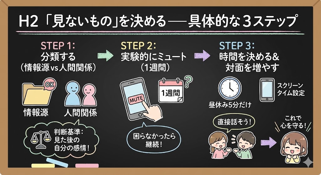 ステップ2:ミュート・非表示を”実験的に”1週間やってみる