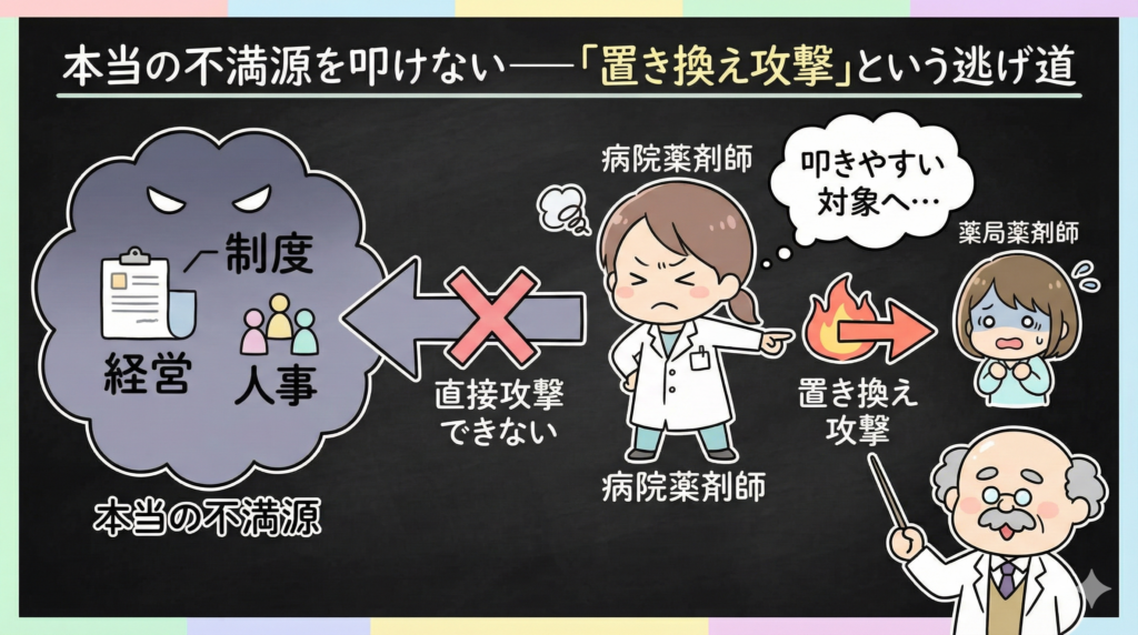 本当の不満源を叩けない——「置き換え攻撃」という逃げ道