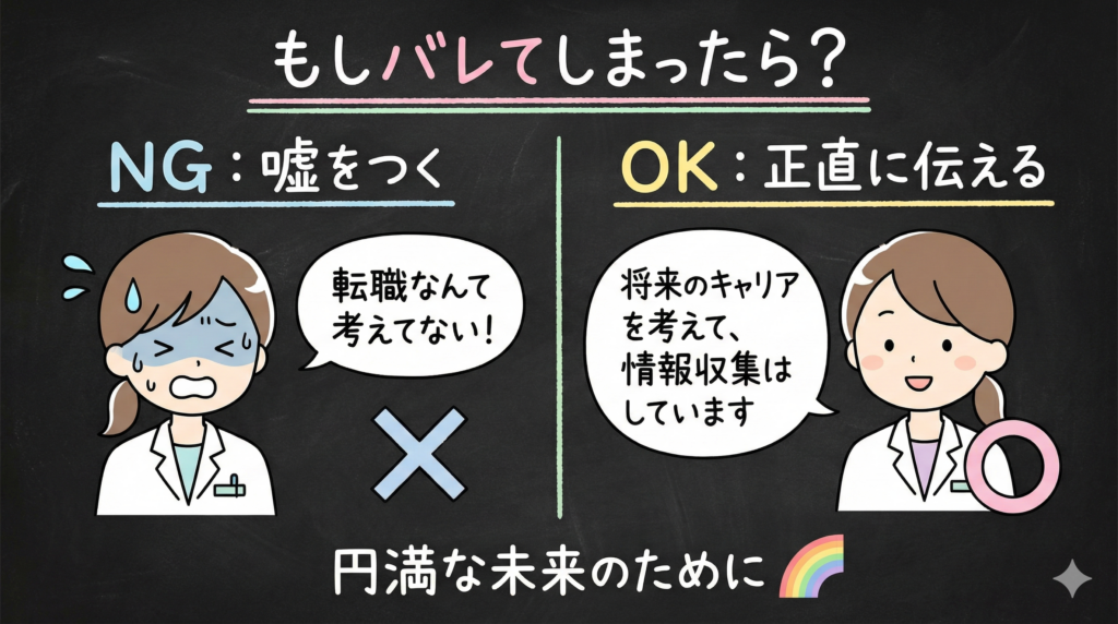 慌てて「転職なんて考えてない!」と否定すると、後から本当に転職するときに信頼を失います。「情報収集レベル」と正直に伝えておくほうが、結果的に円満退職しやすくなることもあります。