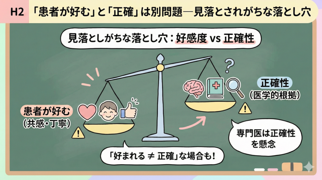 「患者が好む」と「正確」は別問題—見落とされがちな落とし穴
