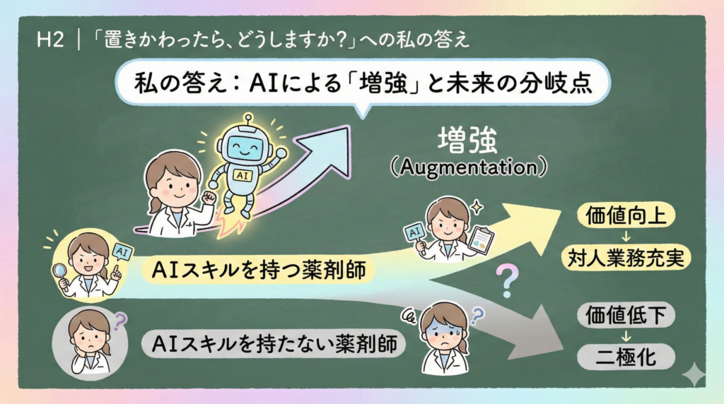 私の答えは、「全部は置きかわらない。ただし、AIが『患者に好まれる』時代に、薬剤師の価値をどう再定義するか」です。