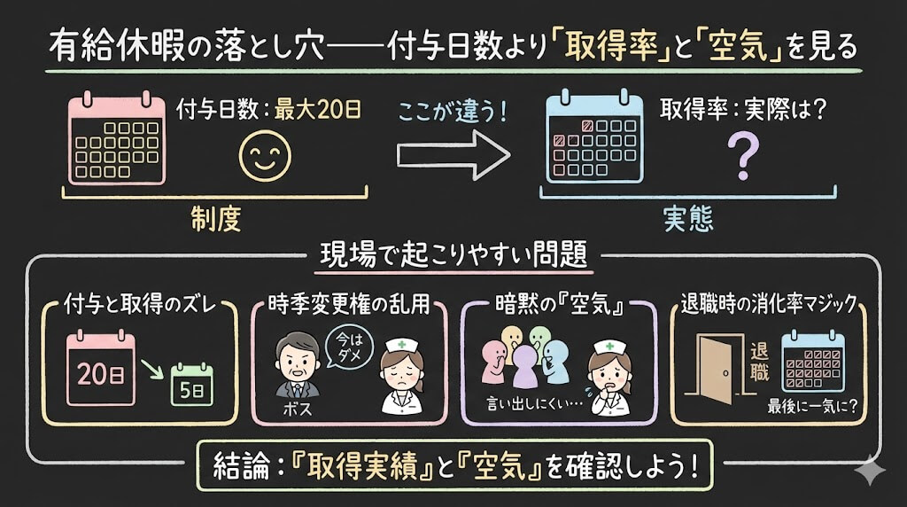 有給休暇の落とし穴——付与日数より「取得率」と「空気」を見る
