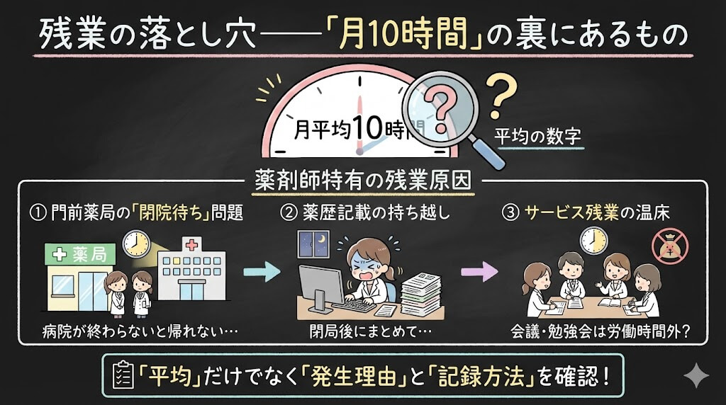 求人票に「残業月10時間」と書いてあっても、薬歴やサービス残業が含まれていないかもしれないってことですか?