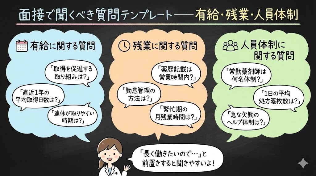 • 面接でそのまま使える質問テンプレート(有給/残業/人員体制)