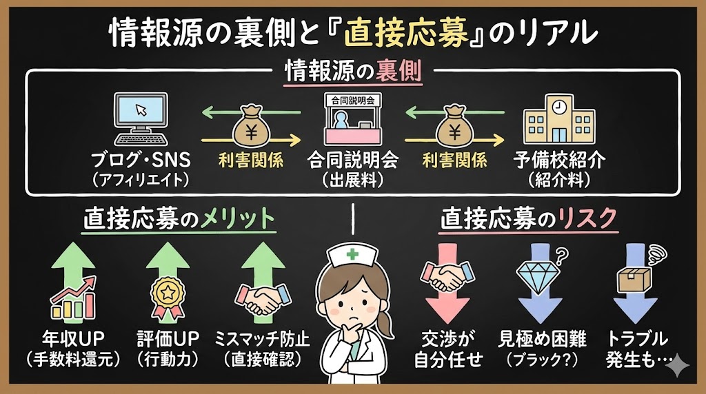 - 直接応募にもリスクがある(交渉、トラブル、情報不足)