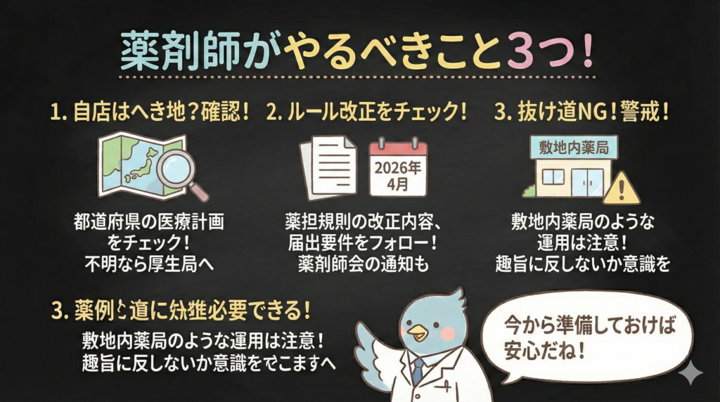 この記事では、改正の背景にある「医薬分業の原則」と「へき地医療への配慮」という2つの判断軸を整理しながら、調剤薬局で働く薬剤師として押さえておきたいポイントを解説します。