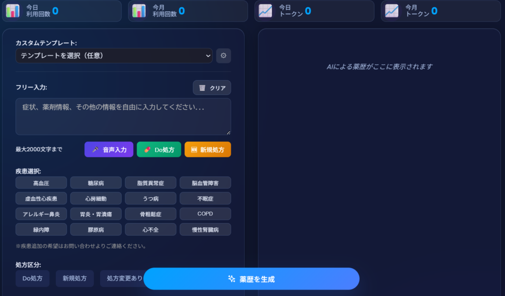 あくまで”下書き“として使う前提ですね。最終確認・修正は薬剤師の責任です。ただ、ゼロから書くより圧倒的に楽になります。