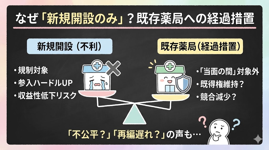 なぜ「新規開設のみ」なのか──既存薬局への経過措置という構図