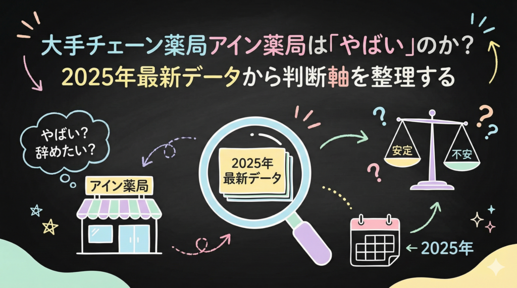 「アイン薬局 辞めたい」「アイン薬局 やばい」——こうした検索ワードでこの記事にたどり着いた方も多いかもしれません。