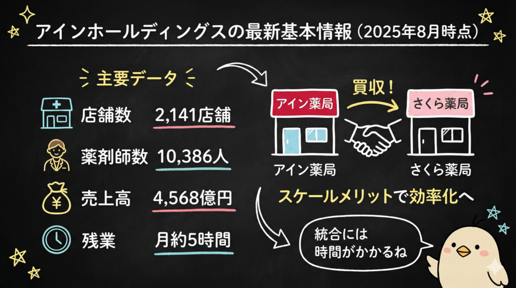 まずは事実を押さえましょう。アインホールディングスは、2025年8月にさくら薬局グループ(クラフト社)を買収し、調剤薬局チェーンとして圧倒的な規模に成長しました。