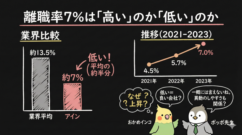 「離職率7%」という数字だけ見ても、それが良いのか悪いのか判断しにくいですよね。心当たりありませんか?