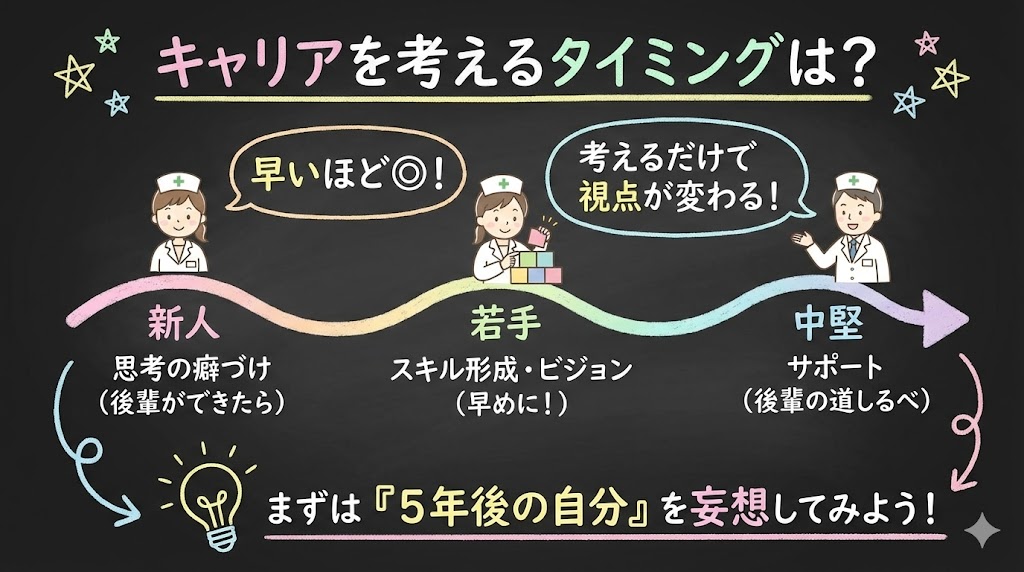 正直、新人のうちは目の前の業務で精一杯で、キャリアなんて考える余裕ないですよね…