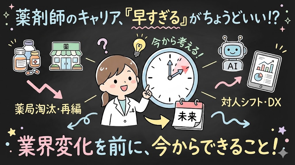 この記事では、薬剤師がキャリアについて「いつ」「何を」考えればいいのか、業界の変化を踏まえながら整理していきます。焦る必要はありませんが、「早すぎる」くらいで考え始めるのがちょうどいい理由を、一緒に確認していきましょう。
