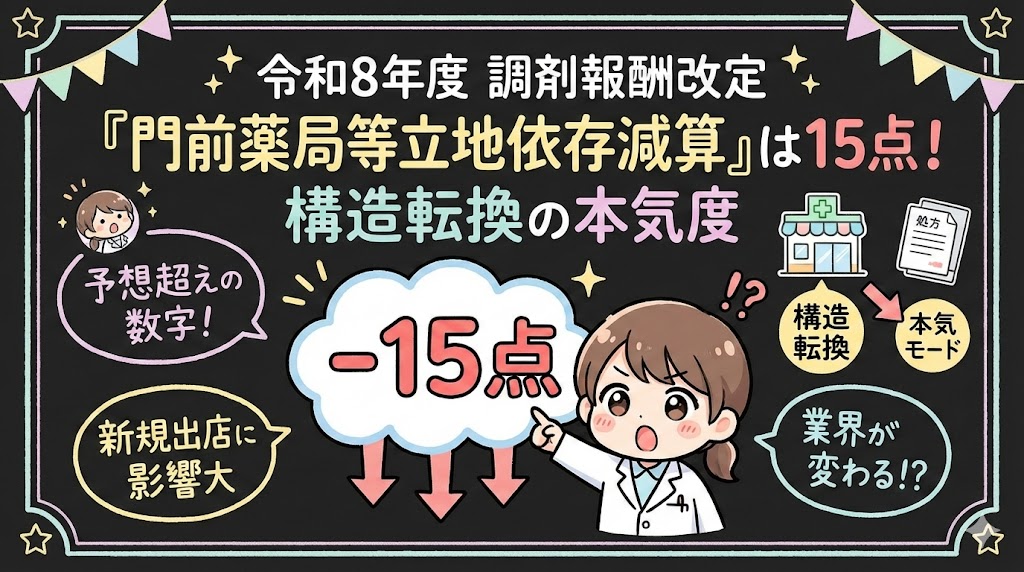令和8年度 調剤報酬改定「門前薬局等立地依存減算」は15点——予想を超えた数字が示す構造転換の本気度