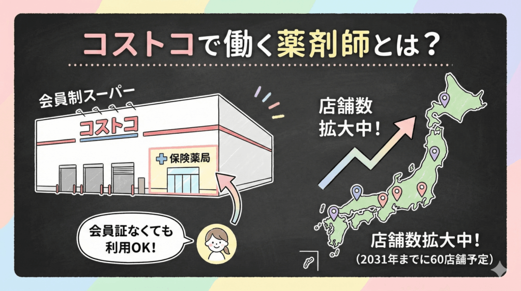 コストコで働く薬剤師とは、そのままで会員制スーパーのコストコのなかにある保険薬局で働く薬剤師のことです。