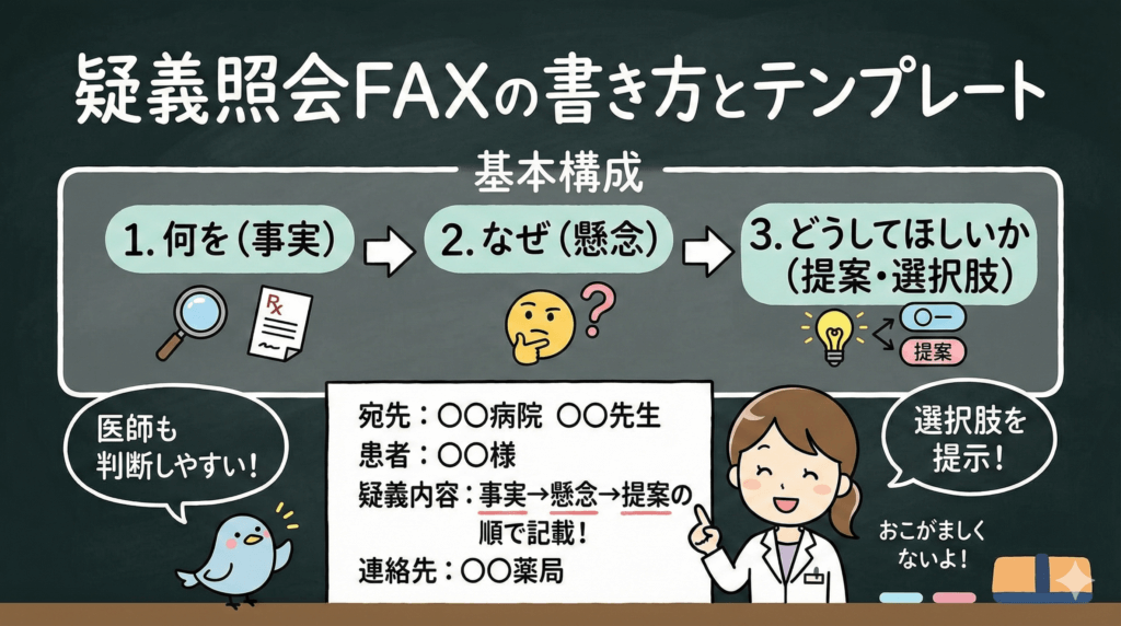疑義照会のFAXで押さえたい項目は以下のとおりです。