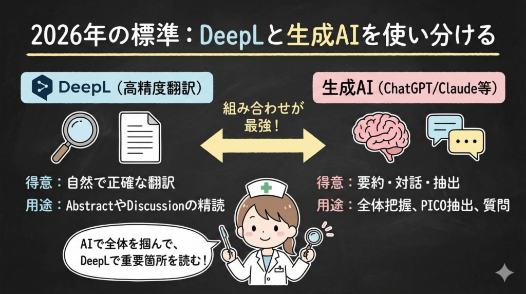 2026年の現在、医学論文を読むハードルは劇的に下がっています。かつては「英語力」の勝負でしたが、今は「ツールの使いこなし」で誰でも最新のエビデンスにアクセスできる時代になりました。