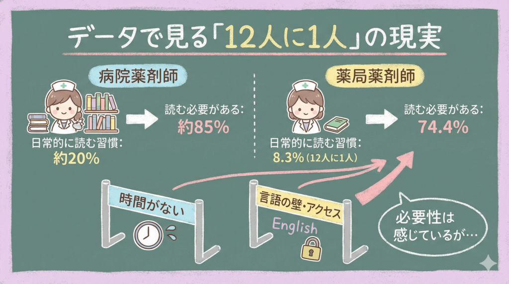 今回は、少し耳の痛いデータを直視しつつ、「論文を読める」というスキルが、これからの薬剤師キャリアにおいてどういう意味を持つのか(あるいは持たないのか)、現実的なラインを探っていきます。