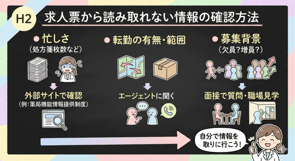 - 労働環境:処方箋枚数と薬剤師人数、転勤の有無、募集背景