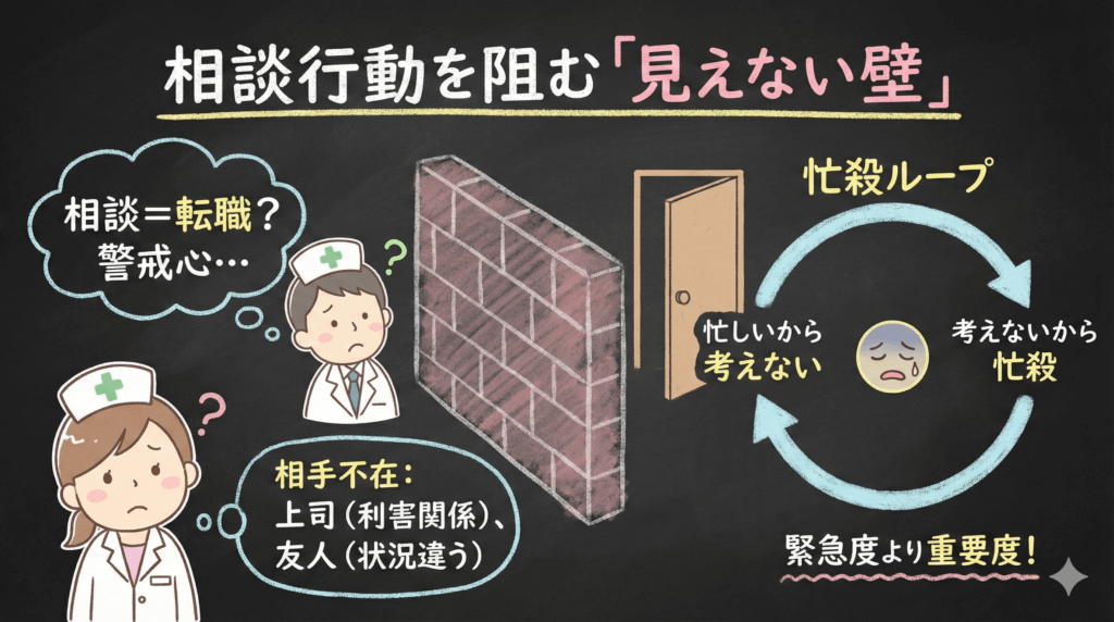 「相談したら転職を勧められるのでは?」「辞めるつもりはないのに…」という警戒心が、壁を作っています。