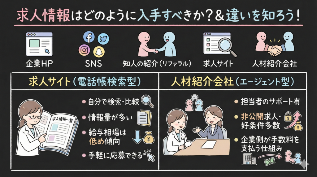 薬剤師の業界で、ヘッドハントの話はあまり聞いたことがありませんが、その他の求人情報の入手方法は言われればわかるものが多いと思います。