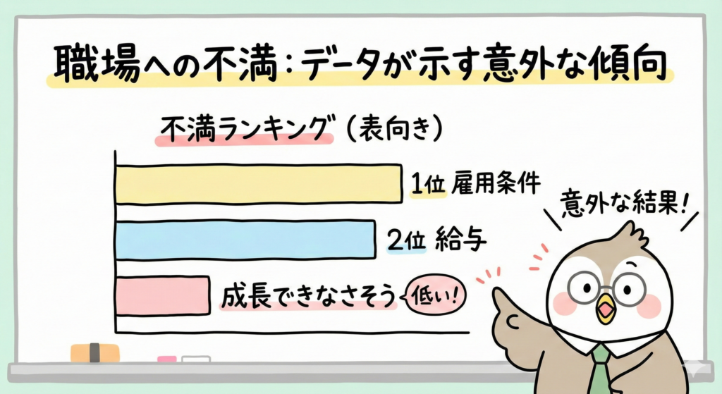 でも、ここで注目したいのは「成長できなさそう」という不満が2.7%と非常に低い点です。これ、現場だとここで詰まりがちです。