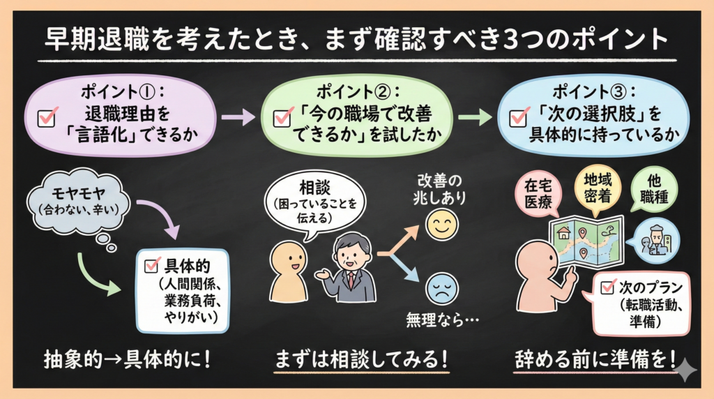 言語化できれば、「次はどこを重視するか」が見えてきます。できなければ、転職先でも同じ壁にぶつかります。