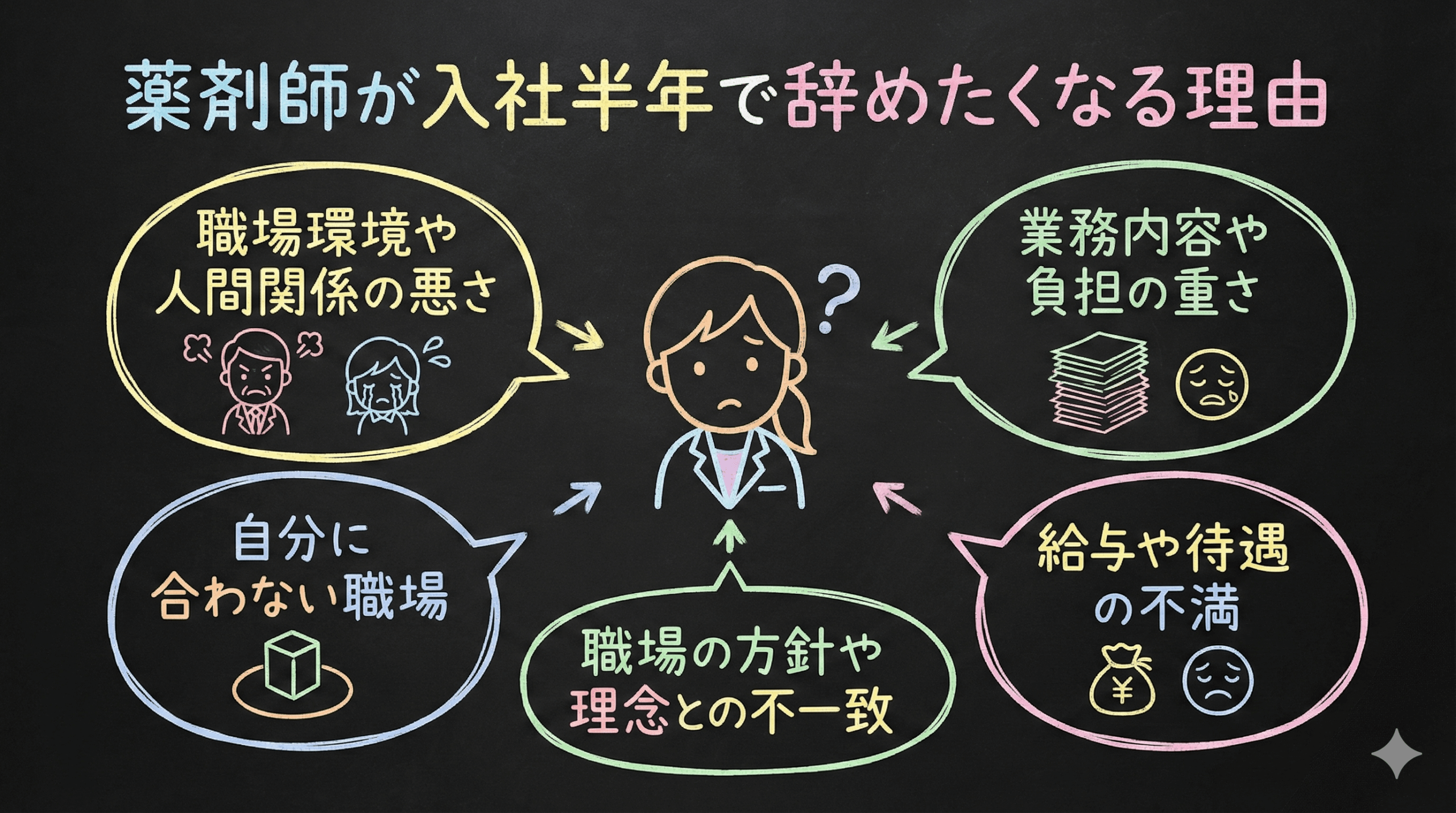薬剤師が入社半年以内で辞めてしまう要因には、以下のようなものがあります。