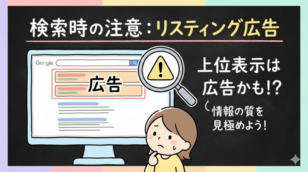 検索の際に情報として注意してほしいのが、リスティング広告です。