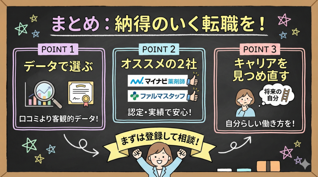 わたしだけが異端で、マイナビ薬剤師とファルマスタッフをオススメしているわけじゃないってことが分かれば、読んだ方も安心すると思います。