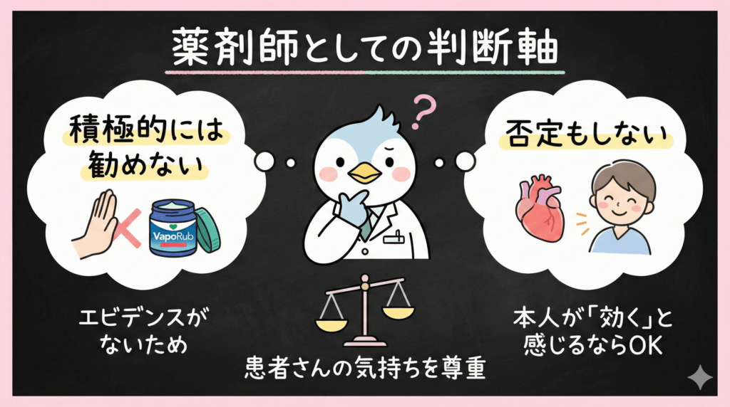 薬剤師としての判断軸——「否定しない」と「勧める」は違う