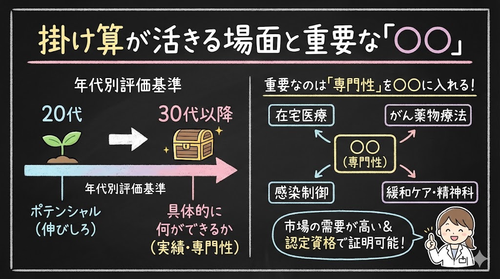 掛け算で考えるなら、ベースとなる「薬剤師」の部分が1以上でないと意味がないんです。