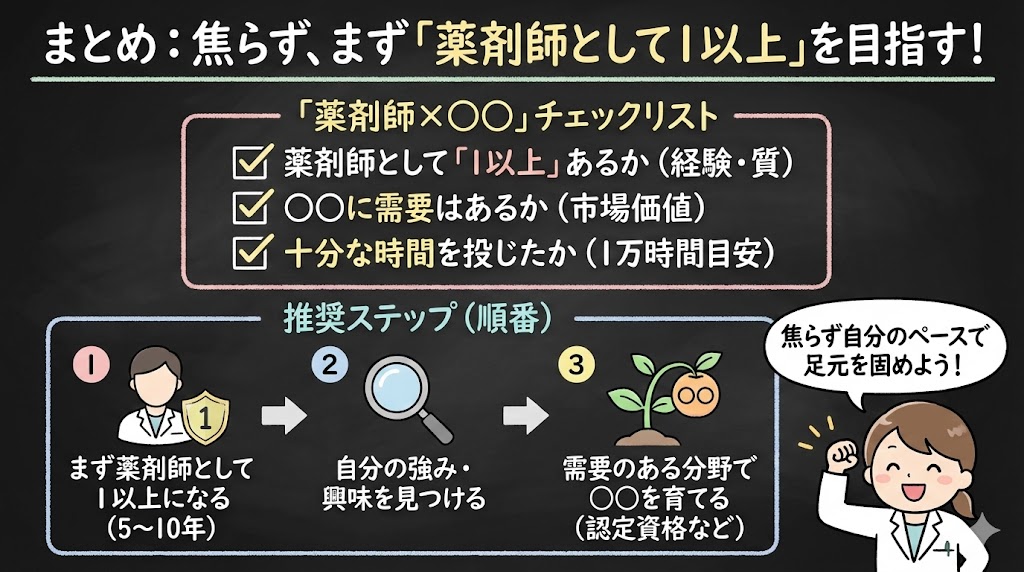 まとめ:焦らず、まず「薬剤師として1以上」を目指す